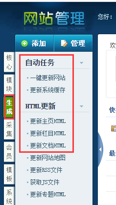 1-1、登录后台:生成静态html,依次从上至下 红色框如下图: