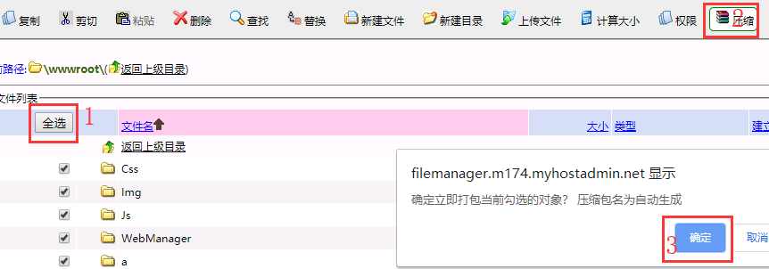 1-3、打包整站下载到你电脑上来。打包可以利用主机控制面板的压缩功能,快速又方便。