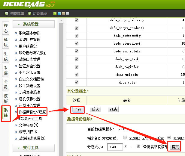 1-2、后台-系统-数据库备份/还原,数据备份。